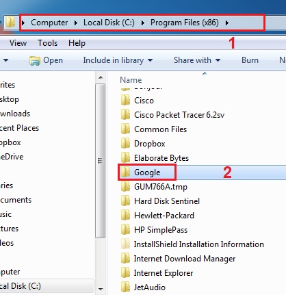 روی فولدر گوگل راست کلیک کرده و فولدر را پاک کنید.